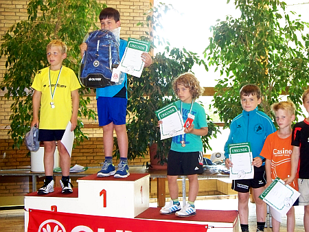 Nichts desto trotz sollte dieser Tag von Erfolg gekrönt sein. Timo wurde nicht nur physisch von Helmut, sondern auch psychisch durch seine Schwester Sarah quasi intensiv betreut. Im Teilnehmerfeld von acht Kindern ging es zunächst mit drei Spielen in die Gruppenphase. Hier hatte Timo auch direkt den stärksten Gegner seiner Gruppe auf dem Feld gegenüber stehen. Relativ deutlich verlor er das Auftaktspiel in zwei Sätzen, wobei er keinen Ball verschenkte und kämpfte um jeden Punkt.