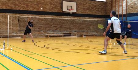 1:2 hinten liegend, starteten dann Claus Schröder und Sarah Hißnauer ihre beiden Einzel. Claus gewann recht deutlich mit 21:15 und 21:11 gegen Harald und Sarah gestaltete den ersten Satz mit 21:6 auch sehr deutlich mit einer enorm konzentrierten Leistung. Leider konnte sie die hohe Anspannung nicht bis zum Ende aufrecht halten, brachte aber ihre Begegnung mit 22:20 sehr zur Freude ihrer Mannschaftskollegen durch.