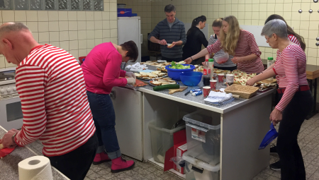 Mit einem Team von 15 Personen, die über das Schmieren und Vorbereiten der Speisen ab dem frühen Nachmittag und dem anschließenden Verkaufen bis in die frühen Morgenstunden allerlei Arbeiten übernahmen, sorgten sie für viele zufriedene und gut gesättigte Gäste und repräsentierten so den Verein – nicht nur in ihrem selbst kreierten, federballspezifischen Outfit – bestens nach außen.