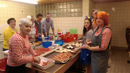 Auch in diesem Jahr kam die Karnevalsgesellschaft 1827 Heimbach wieder auf den BCK mit der Bitte zu, die Küche anlässlich der Damensitzung zu besetzen. Und auch in diesem Jahr fanden sich wieder zahlreiche BCK’ler ein, um das Komitee und damit das rheinische Brauchtum zu unterstützen und die voll besetzte Festhalle der ehemaligen Hauptschule Rommersdorf mit allerlei Leckereien wie Currywurst, Lachs- und Mettbrötchen sowie Siedewürstchen und Schnitzelbrötchen und weiteren Spezialitäten zu versorgen.
