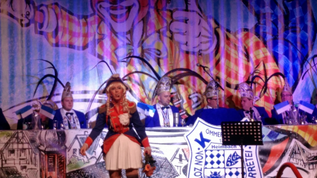 Der BCK war aber nicht nur vor und hinter der Theke und vor der Bühne, nein in diesem Jahr auch wieder auf der Bühne vertreten. Nach einer mehrjährigen Pause stand in dieser Session mit Bärbel Ecker-Rust ein echtes Vortragswunder auf der Bühne. Dass sie nicht nur gut mit dem Badmintonschläger umgehen kann, sondern auch mit ihrer Rhetorik und Gestik die mit mehreren hundert Gästen gefüllte Sporthalle begeistern kann, zeigte sie aufs Vortrefflichste. Als „ahles Funkenmariechen“, welches nach 44 Jahren „die große Karnevalsbühne verlassen soll“, sorgte sie für einen gröhlenden und tobenden Saal – super Bärbel!