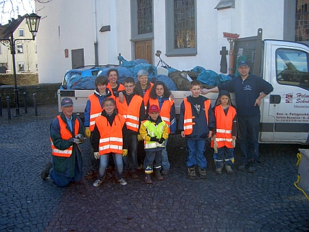 In diesem Jahr folgten dem Aufruf der Bürgergemeinschaft Pro Heimbach-Weis 12 BCK’ler – soviel wie noch nie –, um den Ort von Unrat zu befreien. Unter der Leitung von Organisator Josef Klöber „bewaffneten“ sich die kleinen und großen Federballer mit Handschuhen, Müllsäcken und Greifern und machten sich auf, einen großen Bereich von Müll zu befreien. Der BCK, der seit der „Geburtsstunde“ des Frühjahrsputzes dabei ist, reinigte – wie in jedem Jahr – den Kreisel am Edeka, die Schönfeldstraße und das Langenstück.