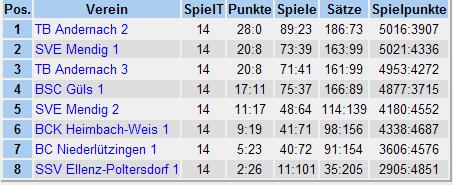 Für die 1. Mannschaft des BCK Heimbach-Weis spielen in der Saison 2010/2011 (Rheinlandliga):
