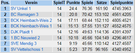 Für die 1. Mannschaft des BCK Heimbach-Weis spielen in der Saison 2015/2016 (Bezirksliga):
