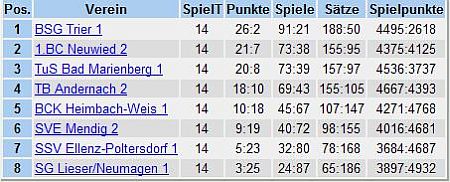 Für die 1. Mannschaft des BCK Heimbach-Weis spielen in der Saison 2009/2010 (Rheinlandliga):