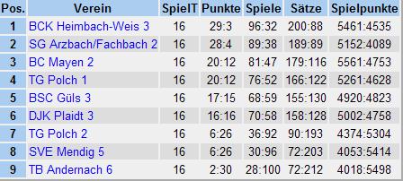 Abschlusstabelle RMM Kreisklasse Saison 2010/2011