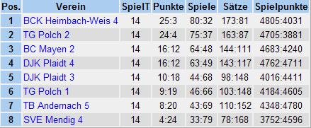 Für die 4. Mannschaft des BCK Heimbach-Weis spielen in der Saison 2012/2013 (Kreisklasse):