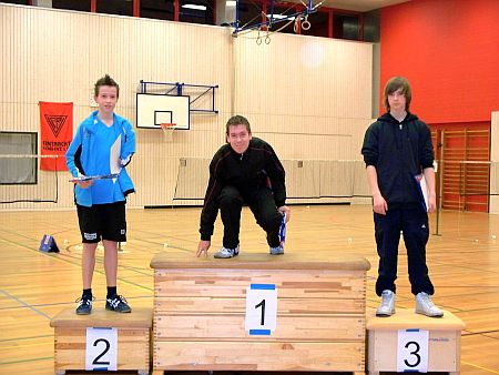 Das Highlight des Tages war das Endspiel bei dem Jan zum zweitenmal auf Yannick M. vom TB Andernach traf. Konnte Jan den ersten Satz relativ klar mit 21:13 gewinnen, so ging der zweite Satz knapp mit 19:21 verloren. Der dritte Satz entwickelte sich zu einem wahren Krimi, bei dem die Halle kochte! Beide Kontrahenten waren nicht bereit klein beizugeben, wobei hierbei zu bedenken war, dass Jan zwei Spiele mehr hinter sich hatte und diese beiden auch noch über die volle Distanz von drei Sätzen gingen. Nach mehrfach vergeben Satzbällen auf beiden Seiten war das Glück letztendlich bei Yannick M., der mit 25:23 gewann. Der Tag ging mit der Siegerehrung um 18:30 Uhr zu Ende.