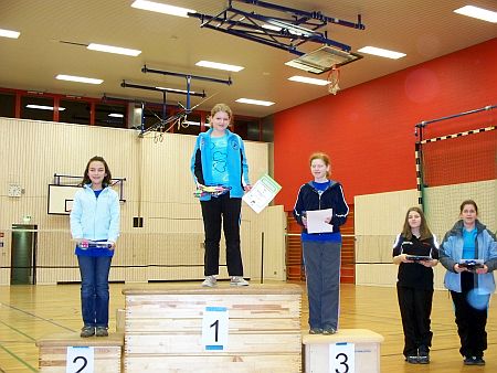 Hierbei hatten Jacqueline, Carolin und Kyra ihre ersten Einsätze und waren sichtlich nervös. Dies übertrug sich auch auf die ersten Spiele. Carolin musste das Feld mit zwei verlorenen Sätzen verlassen. Kyra hingegen kämpfte im ersten Einzel und musste am Ende dennoch das Spiel in drei Sätzen abgeben. Jacqueline hatte den besseren Start und siegte in zwei Sätzen. Die nachfolgende Spiele von Kyra und Caroline gingen leider viel zu schnell für beide verloren. Ausgeschieden und um einige Erfahrungen reicher unterstützen Sie jedoch erfolgreich Jacqueline bei Ihren weiteren Spielen und so erreichte Sie einen durchaus beachtlichen 7. Platz von insgesamt 15 Teilnehmerinnen.