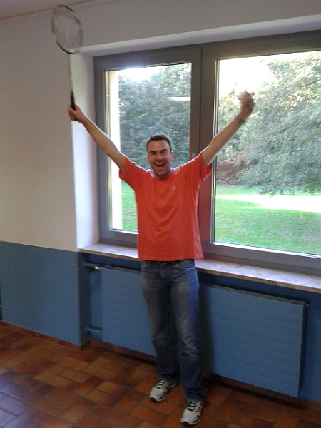 Auch der glücklichste BCK’ler an diesem Tage war bei den Abbauarbeiten zugegen: Michael gewann (aushilfsweise) alle Spiele bei der ersten Mannschaft und „seine“ Fußballmannschaft – die mit den weiß/grün/schwarzen Trikots – konnte den zweiten Saisonsieg einfahren – böse Zungen behaupten, er konnte sein Auto nicht mehr heimfahren, weil er die Arme gar nicht mehr runtergedrückt bekam … GLÜCKWUNSCH!
