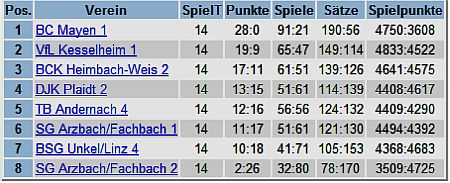 Um den Verlauf der Saison verfolgen zu können, kann die aktuelle Tabelle beim Ergebnisdienst BaROS hier eingesehen werden.