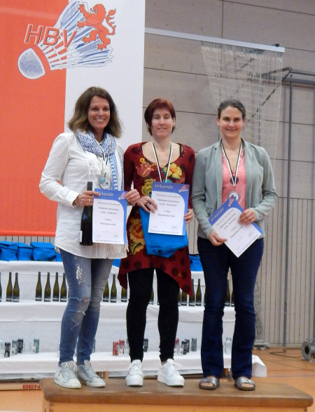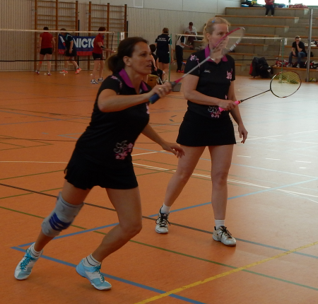 Im vollen 8er Feld trat Tanja gemeinsam mit ihrer hessischen Partnerin Ute Böttcher im DD O45 an. Gleich das Auftaktspiel gegen Sigrid und Sissi aus Vettelschoß verlangte beiden alles ab, denn gewinnen konnte man erst im 3. Satz. Das Halbfinale hingegen war eine deutliche Angelegenheit gegen eine hessische Paarung.
