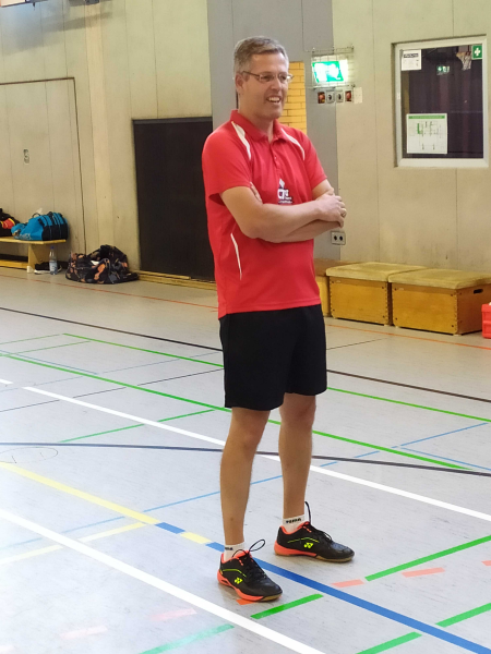Der in Mainz lebende „Federballer“, der früher auch verschiedene Jahre im Rheinland gespielt hat und zwischenzeitlich für den TV Hechtsheim an den Start geht, hat in zwei 3-Stunden-Einheiten viel Theorie und Praxis den „wissbegierigen“ BCK’lern nähergebracht. Mit seiner ruhigen und besonnenen Art hatte Thorsten, der auch langjähriger Mixed-Partner von Tanja Gayk (1. Mannschaft BCK Heimbach-Weis) auf nationaler wie internationaler Ebene ist, ein rundes Programm auf die Beine gestellt, welches sich aus Badminton-Grundlagen, die vielen noch mal vor Augen geführt wurden und im Laufe der Jahre bei den meisten vielleicht „etwas in Vergessenheit geraten sind“, taktischen Hinweisen, Laufwegen, Aufwärmübungen und Schlagtraining, – technik und -sicherheit usw. zusammensetzte.