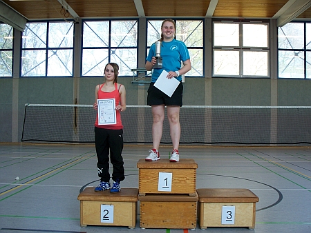 Lediglich zwei Mädchen maßen sich in der Altersstufe U15. Deshalb „durften“ die Spielerinnen zusätzlich in U19 antreten, um ausreichend Spiele zu absolvieren. Im Endspiel setze sich Alina mit 21:10 und 21:9 gegen Anna-Lena durch und durfte ein weiteres Mal den Pokal mitnehmen.