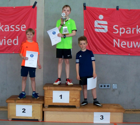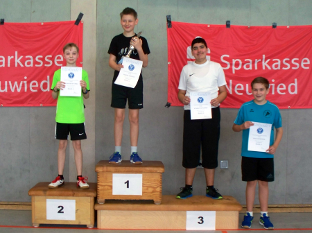 In JU13 traten nur drei Spieler an, hier hatte Dominik keinerlei Probleme seinen Pokal zu verteidigen. Damit die Jüngsten Theo und Levi aber auch Erfahrung sammeln konnten, ließ Helmut beide nach der Beendigung der offiziellen Spiele erneut gegen einander antreten. Der Ehrgeiz das Spiel für sich zu entscheiden war bei beiden vorhanden, letztlich konnte sich aber Theo im 3. Satz, wie in den Gruppenspielen, gegen Levi durchsetzen.