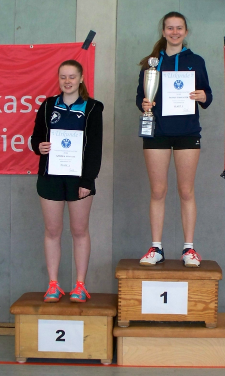 Bei den MU19 war das Teilnehmerfeld am kleinsten. Im einzigen Spiel siegte Sarah in zwei Sätzen gegen Annika.