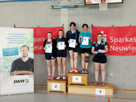 Bei den Damen starteten 3 Doppelpaarungen. Nach spannenden Ballwechseln setzten sich Anja Schäfer und Bärbel-Ecker Rust durch. Vizemeister wurden Annika Schuth und Sarah Hißnauer aus der Jugend. Den dritten Platz belegten Andrea Michels und Selina Haupt.