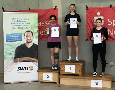Bei den Damen gab es nur ein sehr kleines Teilnehmerfeld von 3 Spielerinnen. Hier konnte sich der Nachwuchs aus der Jugend durchsetzen. Sarah Hißnauer erkämpfte sich den Titel mit 21:15 / 21:14. Hinter ihr belegten Bärbel Ecker-Rust den zweiten und Annika Schuth, ebenfalls aus dem Jugendbereich, den dritten Platz.